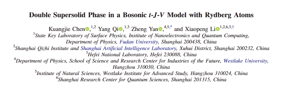 复旦大学、西湖大学等机构的 Xiaopeng Li 团队,通过大规模量子蒙特卡洛模拟,在里德堡原子阵列实现的玻色型 t-J-V 模型中发现双超固体相,揭示其兼具晶格对称性与双 U (1) 对称性破缺的特性及晶体序热增强效应,为掺杂量子磁性研究提供理论指导。